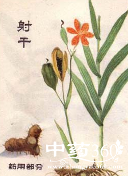3、治水田皮炎,用射干煎水1:20,加适量食盐,乘热温擦患部,可消炎止痒,使丘疹消退。
