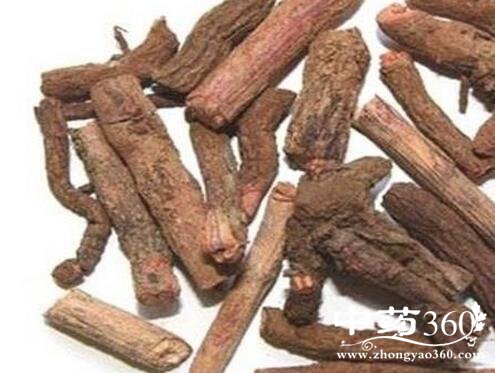 伪品蓬子菜根:外观亦呈不规则的块状根,但长比正品短,且直径较细,外表灰褐色或浅棕褐色,无栓皮易剥落的特征;质硬不易折断,断面类白色或灰黄色,有同心环状排列的棕黄色环纹;闻之亦气微,口尝味淡,无苦味和刺舌感;切片后,用热水浸泡后水呈淡黄色。