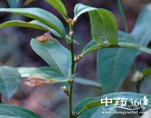 【性状】性状鉴别 本品小枝有纵棱。叶片革质或薄革质,完整叶呈披针形、长圆状披针形或狭披针形,长5-12cm,宽1.5-2.5cm,先端长渐尖,基部渐狭或楔形,中脉明显,基部1对较大侧脉,清晰,其余侧脉不分明。叶柄长10-15mm。质脆,气微,味微苦涩。