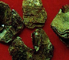 【性状】呈不规则的片状,长约2~6厘米,厚约5厘米。全体暗棕色至墨绿棕色,表明光滑,有网状纹理,具金属光泽。质柔软,表面可用指甲划破并留痕迹。断面呈层状,可剥离成薄片,薄片具可塑性,可随意挠屈。灼热后迅速膨胀。无臭,无味。