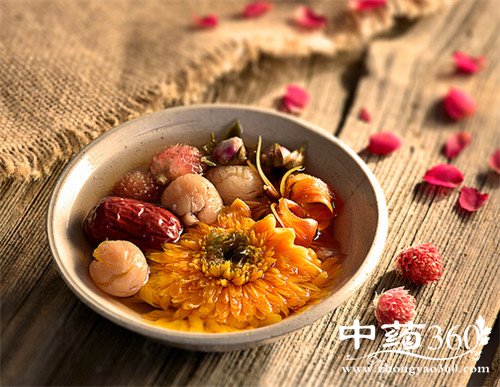 红枣50克、粳米100克、菊花15克,一同放入锅内加清水适量,煮至浓稠时,放入适量红糖调味食用。此方具有健脾补血、清肝明目之功效;长期食用可使面部肤色红润,起到保健防病的作用。