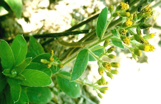 【原形态】落叶灌木。高至1米多,直立,枝条粗壮,被绵毛。单叶互生;狭矩圆形至近倒卵形,长7~10厘米,先端渐尖至钝形,边缘有小锯齿,基部浑圆至广楔形,叶面绿色,有腺点,被粗毛,背白色,密被绢毛或绵毛。头状花序顶生或近顶的腋生,组成稠密的伞房花丛;总苞片数列,矩形至广披针状,长3~7毫米,宽1毫米,被短毛,边缘膜质。成熟后反卷;花托秃裸,有窝点;舌状花冠前端每为3裂,管状花冠5裂,黄色;雄蕊5枚,花药基部矢形,有长尾;子房下位,1室,柱头2裂。瘦果长约1.5毫米,被绢毛;冠毛白色带浅黄色。花期7~8月。果期11~12月。