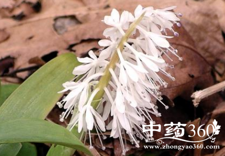 原形态多年生草本,高30余厘米。根茎粗壮,节上有黑褐色膜质鳞片。根生叶倒披针形,长10~17厘米,宽1~3厘米,先端尖,基部狭,全缘,平行脉;茎生叶倒披针形,长约2~3厘米,宽约6毫米,基部抱茎。总状花序顶生,无苞片,花梗长约6毫米;花被6,椭圆形,长约8毫米,宽约2.5毫米,外面浅紫色:雄蕊6,花丝长,超出花被,花药1室;子房由3心皮组成,呈三角形排列,蓝绿色,花柱单一,长约1厘米,柱头头状。蒴果深3裂。种子多数,长形,具尾。花期夏季。