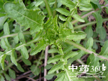植株高30—80厘米。全株无毛。基生叶多个,矩圆形,长3.5—8厘米,宽1—2厘米,顶端急尖或圆钝,基部下延长成柄,边缘有锯齿或不整齐的羽状深裂;茎生叶较小,卵状矩圆形,无柄。茎生叶花期枯萎。花为头状花序,排成伞房状,有细花梗;总苞长7—8毫米,外层总苞片小,长约1毫米。