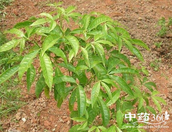 落叶灌木或小乔木,高2~6米。树皮灰白色,不剥落;嫩芽具短毛,余秃净。叶对生;指状复叶,叶柄长4.5~8厘米;小叶3片,矩圆形或长椭圆形,长5~15厘米,宽2~5.5厘米,纸质,先端长尖,基部渐狭而成一短柄,全缘。花单性,圆锥花序,腋生,有近对生而扩展的分枝,被短柔毛;小苞片三角形;花萼4,矩圆形,长不及1毫米,具短毛;花瓣4,黄色,卵圆形,长不及1.5毫米;雄花的雄蕊4枚,长过花瓣1倍;雌花的子房上位,4室,被毛,花柱有短毛,柱头4浅裂。果由4个分离的心皮所成,直径4~6毫米,间有发育不健全的1~3个心皮。种子黑色,圆形,径约3毫米,光泽。花期5~6月间。果期11~12月。