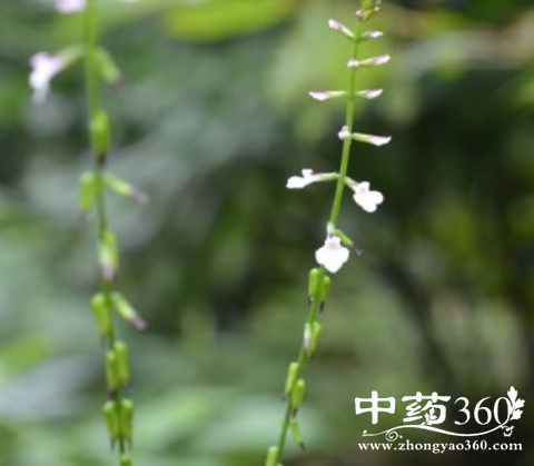 多年生草本,高30~80厘米。茎四棱形,淡紫色,具倒生短毛及紫条纹,节部膨大。单叶对生;卵状长椭圆形,长5~10厘米,宽4~7厘米,先端短尖或渐尖,基部楔形,边缘具钝圆锯齿,两面脉上有短毛;叶柄长0.5~3厘米。穗状花序顶生或腋生,长10~20厘米;苞片及小苞片钻状;花疏生,有短柄;萼筒状,具5棱,长3~6毫米,上唇3齿呈芒状钩,下唇2齿较短,无芒;花冠筒状,粉红色或白色,长约5毫米,裂为唇形,上唇2浅裂,下唇3裂;雄蕊4,2强,着生于花冠筒部;子房上位,1室,花柱顶生,柱头2裂。瘦果包于宿萼内,长8~10毫米。花期6~8月。果期9~10月。