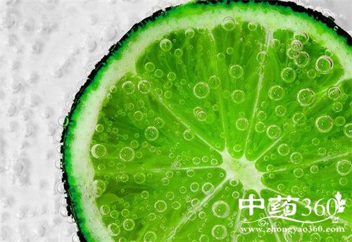 2、洗净2个柠檬,切成两半,将一个柠檬放在榨汁器上,用力挤压出汁来,做成柠檬汁待用。剩下1个柠檬用刀切成薄片,摆在碟边做装饰用。