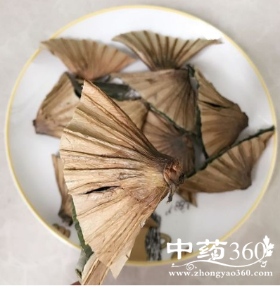 本品为睡莲科植物莲的叶基部。7-9月采取荷叶,将叶基部连同叶柄周围的部分叶片剪下,晾晒成干品或当季节采收后可以新鲜使用的一味药材。