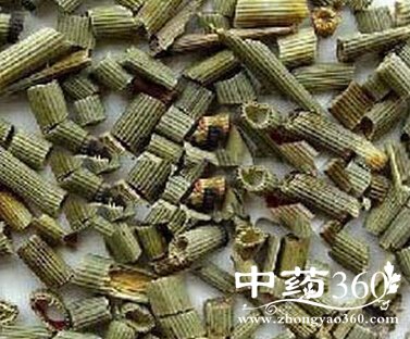 【药材】干燥全草,呈长管状,中空有节,不分枝。长30~60厘米,直径约5毫米,每节长3~6厘米。表面灰绿色或黄绿色,有多数纵枝,顺直排列,其上密生细刺,触之有粗糙感。节处有筒状深棕色的鳞叶。易自节处拔脱。质脆,易折断,断面中空,内有灰白色或浅绿色的薄瓤。气无,味甘,微苫涩。以茎粗长、色绿、质厚、不脱节者为佳。
