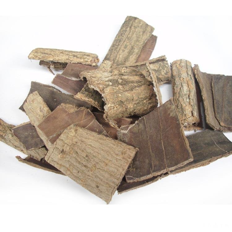 干燥树皮,为平坦的板片状或卷片状,大小厚薄不一,一般厚约3~10毫米,长约40~100厘米。外表面灰棕色,粗糙,有不规则纵裂槽纹及斜方形横裂皮孔,有时可见淡灰色地衣斑。但商品多已削去部分糙皮,故外表面淡棕色,较平滑。内表面光滑,暗紫色。质脆易折断,断面有银白色丝状物相连,细密,略有伸缩性。气微,味稍苦,嚼之有胶状残余物。以皮厚而大,糙皮刮净,外面黄棕色,内面黑褐色而光,折断时白丝多者为佳。皮薄、断面丝少或皮厚带粗皮者质次。