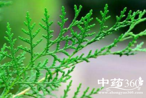 【药材】枝叶呈树枝状。叶细小鳞片形,先端锐尖,紧密贴生于小枝上,但在较大的枝上,叶尖不紧贴而成刺状突出;叶面黄绿色或灰绿色;小枝棕褐色。质脆,易断。气淡,味涩。