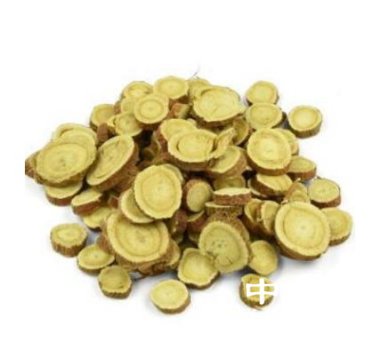 生用主治咽喉肿痛,痛疽疮疡,胃肠道溃疡以及解药毒、食物中毒等。蜜炙主治脾胃功能减退,大便溏薄,乏力发热以及咳嗽、心悸等。甘草入药已有悠久历史。早在二千多年前,《神农本草经》就将其列为药之上乘。南朝医学家陶弘景将甘草尊为“国老”,并言:“此草最为众药之王,经方少有不用者。”“国老”,即帝师之称。把甘草推崇为药之“帝师”,其原因正如李时珍在《本草纲目》中所释:“诸药中甘草为君,治七十二种乳石毒,解一千二百草木毒,调和众药有功,故有‘国老’之号。”甘草性平,味甘,归十二经。有解毒、祛痰、止痛、解痉以至抗癌等药理作用。在中医上,甘草补脾益气,滋咳润肺,缓急解毒,调和百药。临床应用分“生用”与“蜜炙”之别。生用主治咽喉肿痛,痛疽疮疡,胃肠道溃疡以及解药毒、食物中毒等;蜜炙主治脾胃功能减退,大便溏薄,乏力发热以及咳嗽、心悸等。西医药理发现,甘草剂有抗炎和抗变态反映的功能,因此在西医临床上主要作为缓和剂。缓解咳嗽,祛痰,治疗咽痛喉炎;甘草或甘草次酸有去氧皮质酮类作用,对慢性肾上腺皮质功能减退症有良好功效;甘草制剂能促进胃部粘液形成和分泌,延长上皮细胞寿命,有抗炎活性,常用于慢性溃疡和十二指肠溃疡的治疗;甘草的黄酮具有消炎、解痉和抗酸作用;甘草也是人丹的主要原料之一。甘草性状根呈圆柱形,长25~100cm,直径0.6~3.5cm。外皮松紧不一。表面红棕色或灰棕色,具显著的纵皱纹,沟纹、皮孔及衡疏的细根痕。质坚实,断面略显纤维性,黄白色,粉性,形成层环明显,射线放射状,有的有裂隙。根茎呈圆柱形,表面有芽痕,断面中部有髓。气微,味甜而特殊。胀果甘草根及根茎木质粗壮,有的分枝,外皮粗糙,多灰棕色或灰褐色。质坚硬,木质纤维多,粉性小。根茎不定芽多而粗大。光果甘草根及根茎质地较坚实,有的分枝,外皮不粗糙,多灰棕色,皮孔细而不明显。功能主治补脾益气,清热解毒,祛痰止咳,缓急止痛,调和诸药。用于脾胃虚弱,倦怠乏力,心悸气短,咳嗽痰多,脘腹、四肢挛急疼痛,痈肿疮毒,缓解药物毒性、烈性。