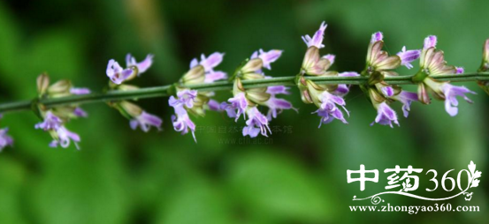 原形态关分须,一年生上立草本,高达60cm。茎钝四棱形,具沟,被微柔毛。叶大多基生,叶柄长3-10cm;茎生叶约2对,叶柄长约1cm至近无柄,被短柔毛或微柔毛;叶片均长圆状卵圆形、披针形或卵圆形,长4-13.5cm,宽2-5.5cm,先端锐尖,基部近心形或心形,上面绿色,无毛,下面紫色,沿脉被微柔毛,边缘具浅钝锯齿。轮伞花序2-6花,组成顶生或腋生的总状花序;苞片披针形,比花萼长或短;小苞片披针形,比花梗短或近等长;花梗与花序灿密被微柔毛;花萼筒状钟形,外面紫色,萼檐二唇形,下唇比上唇稍长,半裂成2齿;花冠紫色,外被短柔毛,内面有疏柔毛毛环,冠檐二唇形,先端微凹,下唇3裂,中裂片最大;能育雄蕊2,外伸;花柱外伸,先端不相等2浅裂,前裂片较长;花盘前方微膨大。花期5月。