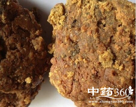 真品阿魏 多由球粒凝聚而成大小不等的块状。外表暗黄色或黑棕色,贮藏日久,则变为红棕色。新采集的阿魏,断面为乳白色或浅黄棕色,或有红棕色交错其间,被称为“五彩阿魏”;质如脂膏状物,硬度如白蜡;加水研磨,成白色乳状液;由于其含有近20%的挥发油,所以具有强烈而持久的大蒜样臭气,故又称“臭阿魏”,用口尝之味苦辣如蒜。