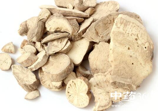 性状鉴别:块根呈不规则圆柱形、半圆柱形块状或块片状,常弯曲如结节样,长3~10cm,直径1~5(~6)cm。去栓皮的药材表面淡灰黄色,可见残留的灰褐色栓皮,弯曲处有深陷的横沟。体重、质坚实,断面平坦,灰白色至黄白色,富粉性,有排列较稀疏的放射状纹理,纵剖面浅灰白色,维管束浅棕色,呈弯曲筋脉状纹理。气微,味苦。以质坚实、粉性足者为佳。