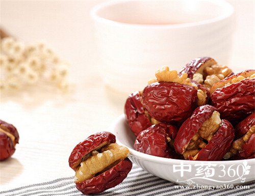2、与红枣、冰糖一起放到锅里,加水6碗。