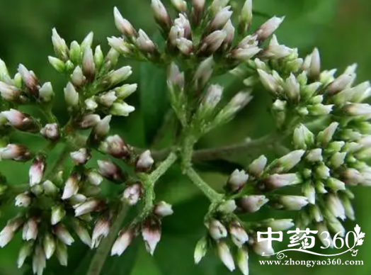 【原形态】多年生草本,高1~2米。地下根茎匍匐,木质化;根细长,多弯曲。茎直立,常丛生,基部本质化,上部绿色,有紫色斑点,被柔毛。单叶对生;叶柄长短不一;叶片卵圆形或椭圆形,长5~12厘米,宽2~5厘米,边缘具锯齿,上面深绿色,下面淡绿色,被疏毛,脉上较多,有腺点。头状花序多数,排列成伞房状,生枝梢,花序基部有一小苞叶;总苞钟状,总苞片约9枚,覆瓦状排列;管状花约5朵,白色;花冠下部呈管状,上部稍宽,顶端5裂。瘦果具5棱,有腺点,冠毛白色羽毛状。花期8~9月。果期9~11月。