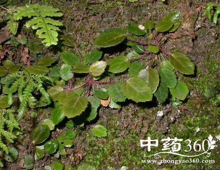 【原形态】峨屏草 多年生草本,高6-12cm。根茎横走,直径约2mm。单叶可过15枚,均为基生;叶柄长1.1-6.5cm,被褐色腺柔毛;叶片革质,卵形或椭圆状卵形,长0.8-3.5cm,宽0.5-2.8cm,先端急尖,基部圆形或浅心形,边缘具粗锯齿,两面疏生褐色腺柔毛,脉不明显。花小,顶生,排成疏散、尖塔形的总状花序,花葶疏被腺柔毛;苞片钻形,长约3mm;花梗细,长约4mm;花萼白色,钟状,5-8列近基部,列片披针形,先端急尖,两面无毛,边缘具极小腺毛,单脉;无花瓣;雄蕊8-10,长达3mm;心皮2,下部合生,子房近上位,1室,花柱2。蒴果长约4mm,2果瓣叉开。花、果期4-10月。