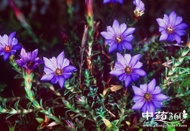 1.龙胆 分布于东北及内蒙古、河北、陕西、新疆、江苏、安徽、浙江、江西、福建、湖北、湖南、广东、广西等地。