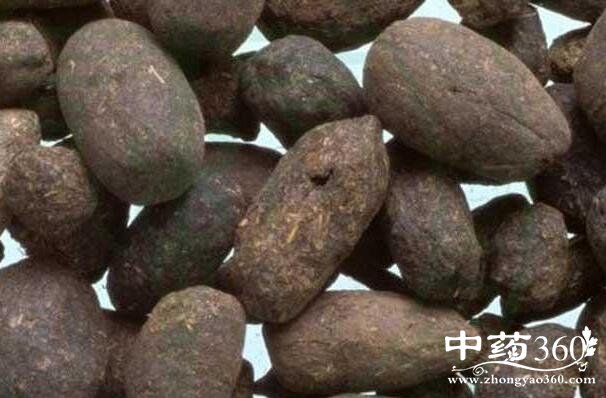真品为干燥的粪粒,呈长椭圆形,长5~12mm,直径3~6mm,两端钝圆。表面微粗糙,黑棕色或棕褐色,淡黄色的纤维散在。体轻而质松,易折断,断面黄绿色或黄褐色,手捻之易成粉,纤维性。投入热水中,即可漂浮水面,两指轻捏有弹性,不变形。