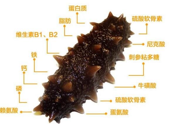海参多为干制品,好的海参形体饱满、质重皮薄、肉壁肥厚。水发后涨性大,糯而滑爽、有弹性、无砂粒。