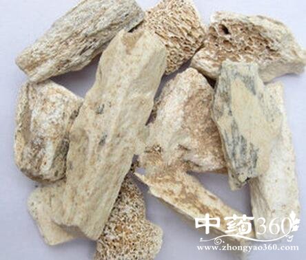 【药材】呈完整的齿状或破碎成不规则的块状。完整者可分为犬齿与臼齿。犬齿呈圆锥形,先端较细或略弯曲,长约7厘米,径约3厘米,近尖端处常中空。臼齿呈圆柱形或方柱形,一端较细,略弯曲,长约5厘米,多有深浅不同的沟棱。其中呈青灰色者习称“青龙齿”,呈黄白色者习称“白龙齿”。有的表面尚具光泽的珐琅质。质坚硬,断面粗糙,凹凸不平,或有不规则的突起棱线,吸湿性强。无臭,无味。以不带牙床、吸湿性强者为佳。习惯以青龙齿品质较好。