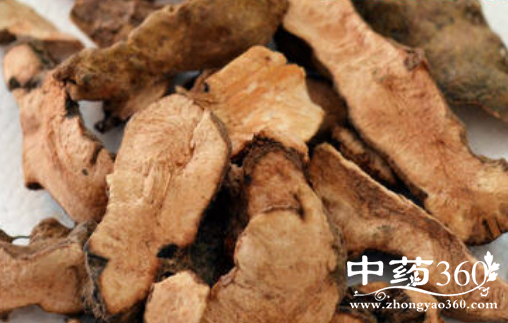 【药材】干燥根皮,呈条块状或半卷筒状,长短大小不等。外表略粗糙,质脆,呈棕褐色,有多数纵皱纹及横裂纹。内表面红棕色。质硬易折断,横断面不光滑,纤维性。略有香味。