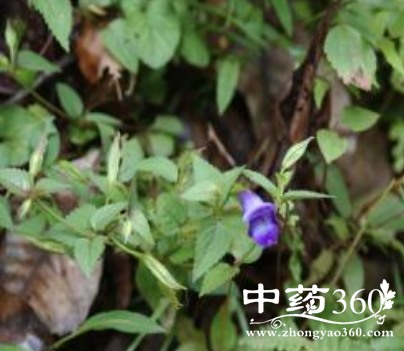 一年生小草本,高6~13厘米。茎直立,方形,棱上有细短柔毛。叶对生;叶片卵形,先端钝,基部浑圆或阔楔形,边缘有疏锯齿及短毛,下面主脉上疏具细短毛:花在顶端腋生,1~2朵;萼钟形,5裂;花冠淡红紫色,唇形。朔果。