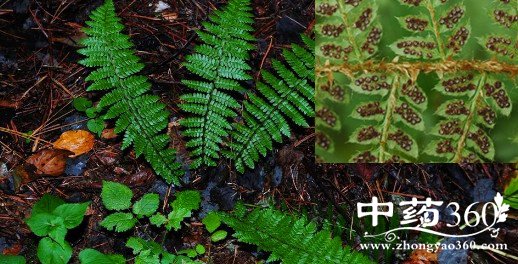 【原形态】多年生草本,高40~60厘米。根茎块状,横卧。叶柄短,长6~8厘米,有沟,褐棕色,与中轴密被鳞片;鳞片淡褐色乃至淡黄褐色;叶倒披针形,长40~60厘米,宽10~15厘米,下部羽片渐缩短,2次羽状分裂;羽片长披针形,长5~8厘米,宽2厘米;基部最宽;小羽片矩卵形,稍呈耳状,密接,边缘疏刺齿状,齿软,叶下、叶轴及中肋均被鳞毛;叶下灰绿色。孢子囊群小,不连接,位于近中肋处,子囊盖全缘,无毛。