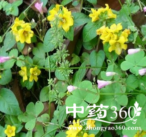 【原形态】多年生匍匐草本,茎基部节间短,常生不定根,上部及分枝上升,长6-50cm,圆柱形,密被多细胞卷曲柔毛;分枝纤细,有时仅顶端具叶。叶对生,茎端的2对间距短,近密集;叶柄长1.4-9cm;叶片卵形、阔卵形以至近圆形,近等长,长(0.7-)1.4-3(-4.5)cm,宽(0.6-)1.3-2.2(-3)cm,先端锐尖或钝,基部近圆形或截形,稀略呈心形,上面绿色,下面较淡,有时沿中肋和们脉染紫红色,两面多少被具节糙伏毛,稀近于无毛,近边缘有暗红色或有时变为黑色的腺点,侧脉2-4对,在下面稍隆起,网脉纤细,不明显。花2-4朵集生茎端和伎端或近头状的总状花序,在花序下方的1对叶腋有时具单生的花;花梗极短或长至2mm;花萼5深裂,长5-8.5mm,分裂近达基部,裂片披针形,宽约1.5mm,背面被疏柔毛;花冠黄色,内面基部紫红色;长9-11mm,基部合生部分长2-3mm,5裂(偶有6裂的),裂片卵状椭圆形至长圆形,宽3-6.5mm,先端锐尖或钝,散生暗红色或变黑色的腺点;雄蕊5,花丝下部合生成高约2.5mm的筒,分离部分长2.5-4.5mm,花药长圆形,长约1.5mm;子房被毛,花柱长5-7mm。蒴果球形,直径3-4mm,上半部具毛;花萼宿存。花期5-6月,果期7-10月。