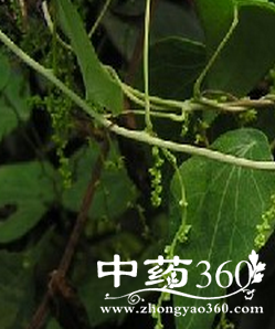 【原形态】缠绕藤本。根粗壮,圆柱形,外表灰褐色,微扭曲。茎细硬,有纵沟,被黄色细柔毛。叶互生,膜质,卵状三角形,长5~6厘米,宽3~5厘米,先端尖或略钝,基部截形或微心形,全缘,两面均被细绒毛,掌状脉5~7条;叶柄短于叶片,盾状着生,有黄色绒毛。花单性,雌雄异株;为腋生的圆锥花序;雄花花萼钟形,绿色或浅紫色。核果扁圆形,生有硬毛。