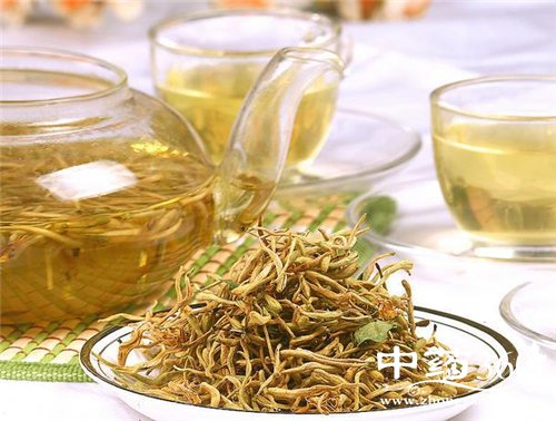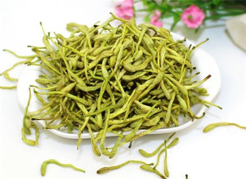 6、金银花茶味甘,性寒,具有清热解毒、疏散风热的作用。金银花有清热解毒、疏利咽喉、消暑除烦的作用。可治疗暑热症、泻痢、流感、疮疖肿毒、急慢性扁桃体炎、牙周炎等病。