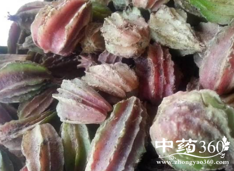 性状性状鉴别,果实呈卵圆形可椭圆形,略向一侧弯曲。果皮表面淡黄色或黄棕色,具明显九条翅,被稀疏白色短柔毛,除果翅外,可见明显的纵走棱线。果皮较薄,经压后易沿棱处开裂,内表面黄色。中轴胎座,3室。种子团呈卵圆形或圆锥形,一端较尖长,每室有种子团2-12粒。种子不规则形,略扁,表面褐色、深棕郄或浅棕色。气香,味辛凉。
