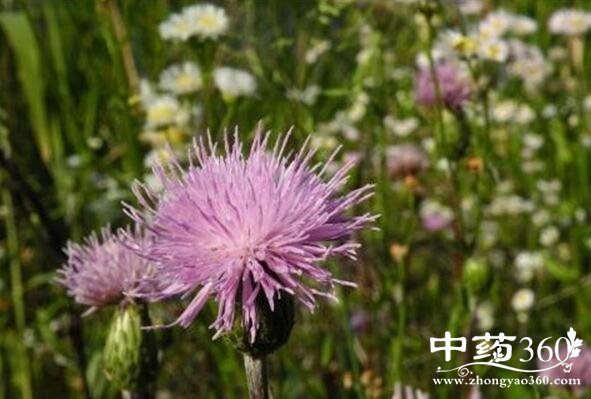 【原形态】泥胡菜 二年生草本,高30-80cm。根圆锥形,肉质。茎直立,具纵沟纹,无毛或具白色蛛丝状毛。基生叶莲座状,具柄,倒披针形或倒披针状椭圆形,长7-21cm,根提琴状羽状分裂,顶裂片三角形,较大,有时3裂,侧裂片7-8对,长椭圆状披针形,下面被白色蛛丝状毛;中部叶椭圆形,无柄,羽状分裂;上部叶条状披针形至条形。头状花序多数,有长梗;总苞于形,长12-14mm,宽18-22mm;总苞片5-8层,外层较短,卵形,中层椭圆形,内层条状披针形,各层总苞片背面先端下具1紫红色鸡冠状附片;花紫色。瘦果椭圆形,长2.5mm,具15条纵肋;冠毛白色,2列,羽毛状。花期5-6月。