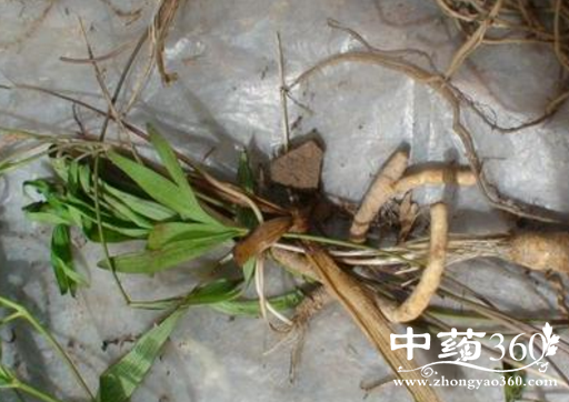【药材】干燥根呈圆锥形或长圆柱形,微弯曲,有时分枝,长10~20厘米,直径约0.5~1.5厘米,外表灰棕色或棕黄色。根头部有时膨大(达2厘米)或有时缩小,顶端有明显下陷的茎痕,四周有细环纹和残存的叶鞘纤维。根部有致密的纵皱纹及横长而凸出的皮孔,有时可见点状突起的须根痕。质坚实,不易折断,断面不平坦,中央为黄色的木质部,皮层占根的大部分,白色,散生棕色油点,接近形成层部尤多。气香,味微甘而涩。以条肥大,外皮细黄,内心白,现菊花心,有油质,味甘者为佳。