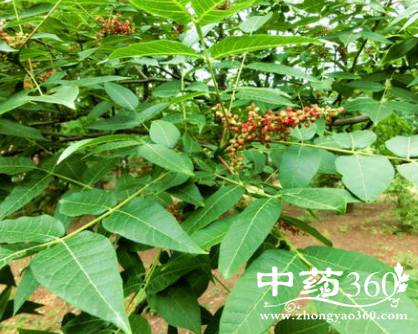 落叶乔木,高5~8米。树皮粗糙,灰色,有裂缝,小枝通常平滑无毛。单数羽状复叶,互生,具小叶7~9枚,每叶有极短而明显的柄,小叶卵状长圆形至长圆状披针形,长5~10厘米,宽2~4厘米,先端渐尖,基部斜楔形或圆形,全缘,背面沿叶脉处微有细毛或近于无毛;叶轴圆柱形,有时在上部的小叶片间有狭翅。圆锥花序顶生,长10~20厘米,有微毛;花小;萼片5,宿存;花瓣5,白色;雄蕊5,花药黄色;雌蕊1,子房上位,花柱3裂。果序下垂,核果近球形,直径3~4毫米,血红色,密被绒毛,内含一粒种子。花期5~6月。果期9月。