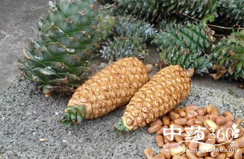 【别名】松塔、松球、松果、椁树核桃、蛇皮松果、白松果