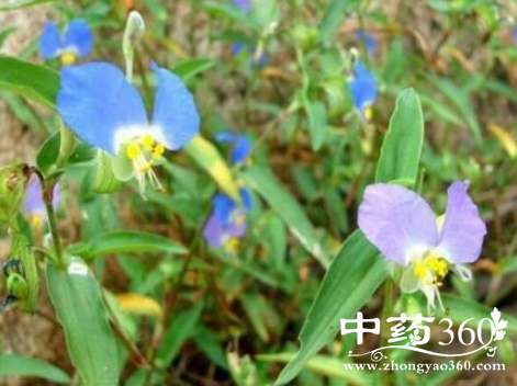 一年生草本。匍匐茎节上具不定根,茎圆柱形,一侧有细绒毛。叶互生;线状披针形,长4厘米,宽5毫米,先端尖。基部鞘状包围茎上。圆锥花序,由叶腋抽出;萼片3,草质,绿色;花瓣3,倒卵形,蓝色;发育雄蕊3,退化雄蕊3;子房无柄,雌蕊1。蒴果椭圆形,压扁状,背裂,长约8毫米,粟柄上部呈三棱;种子一行排列,扁平。花期9~10月。